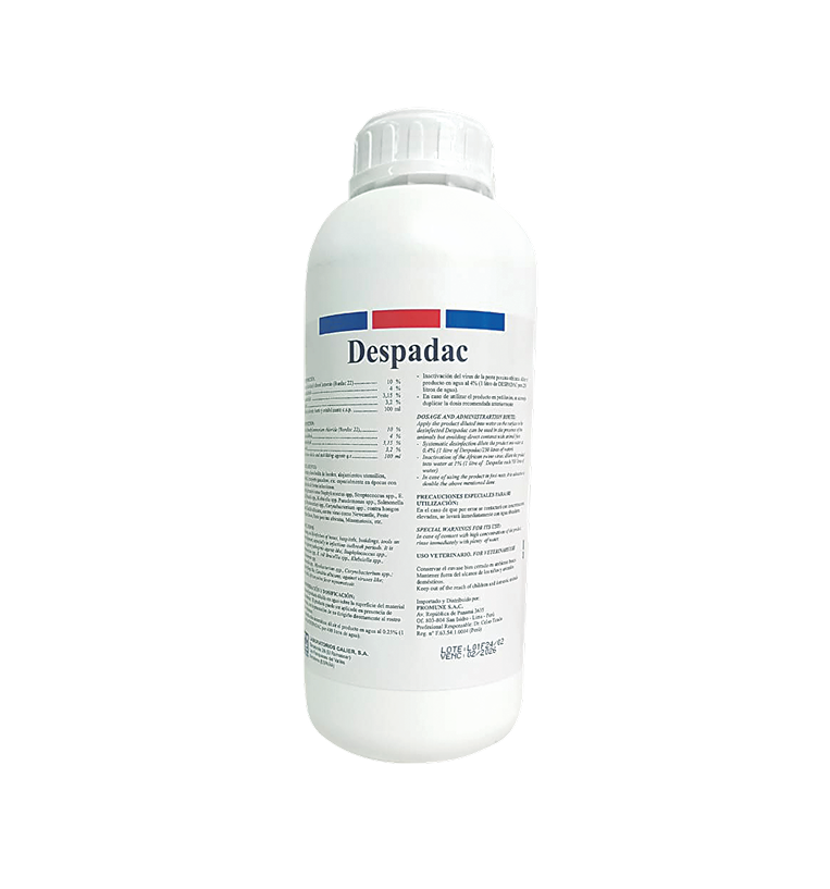 Desinfectante con equilibrada proporcionalidad de sus componentes activos, detergentes, antisépticos, solventes y desinfectantes que le proporcionan un amplio espectro: bacterias, hongos, mohos y virus patógenos y perniciosos para las especies avícolas y ganaderas, siendo